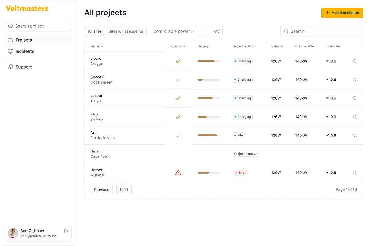 Het platform toont alle incidenten in één duidelijk overzicht, met directe statusupdates en trends. Uw team reageert sneller en behoudt volledige controle over de energie-infrastructuur.