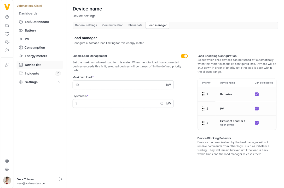 Via een duidelijke lijst bepaal je welke apparaten eerst worden afgeschakeld.
